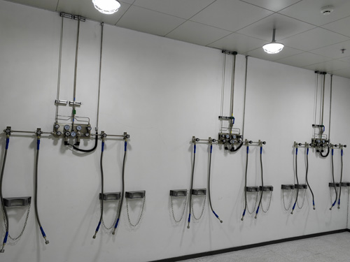 7.氣瓶間內存儲的氣瓶選用帶防倒鏈的氣瓶固定架上緊固,氣瓶固定架上牢固性價比高、整齊普定。氣瓶固定架上選用鉛合金鋼制作方法而成。